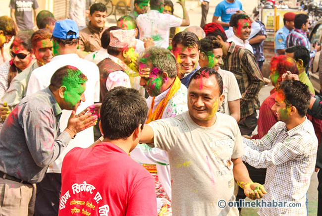 तराईका जिल्लाहरुको विभिन्नको चोकमा साङ्गतिक कार्यक्रम गर्दै तथा एकआपसमा मित्रता, आत्मीयता, सामीर्य र सद्घाव दर्शाउन साथीभाईहरुलाई अबिर तथा रङ लगाई होली पर्व मनाइदै छ ।